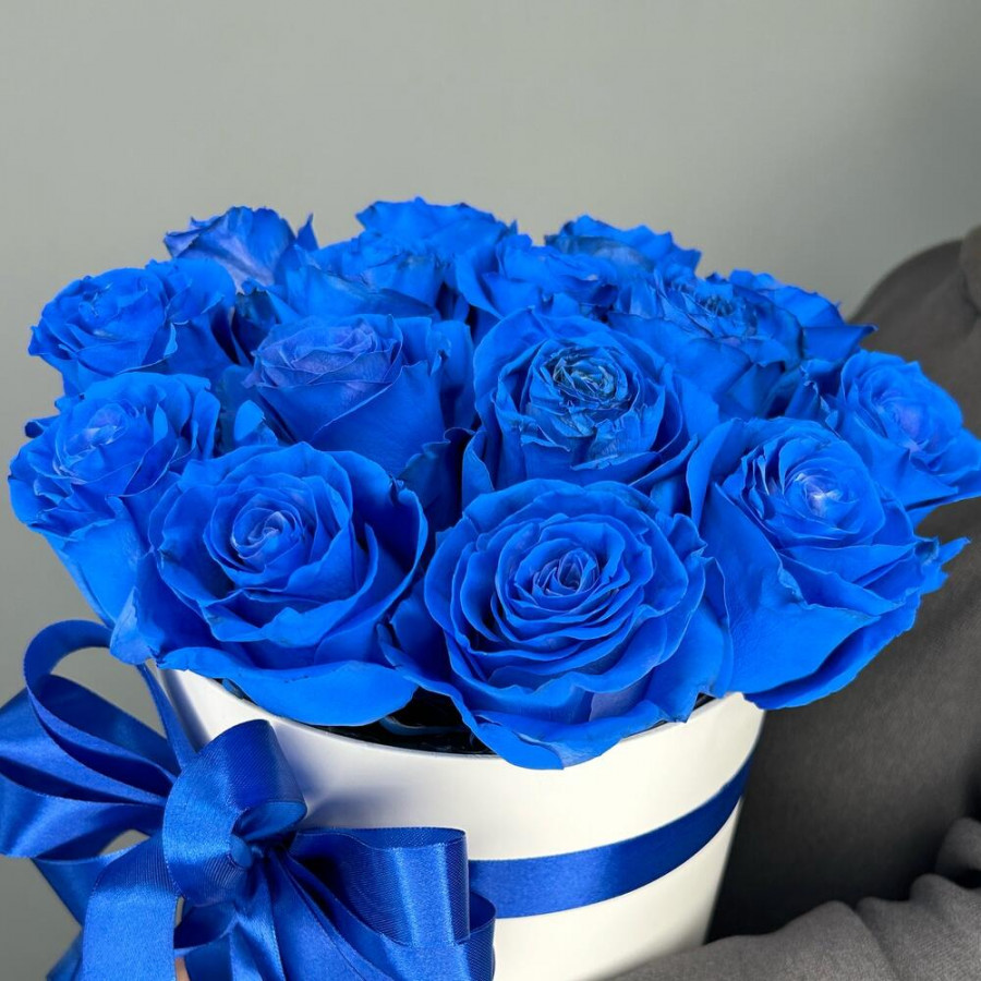 13 синих роз в шляпной коробке