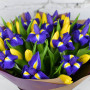 Букет из синих ирисов и желтых тюльпанов в Дзержинске
