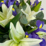 Букет из белых лилий с синими ирисами в Дзержинске